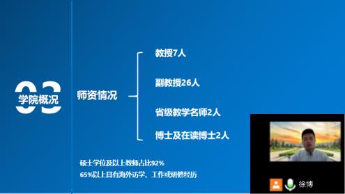 首先,徐博老师进行了简要自我介绍,并对新同学加入语言文化传播学院表示欢迎。同时也表达了美好祝愿和殷切期望。其次,徐老师主要从校情校史、学院情况、校园生活、防骗指南、疫情防控五个方面进行了详细讲解。徐老师对学校和学院发展历史、师资队伍、搭建实践平台等方面进行具体介绍,同时向同学们展示了学校丰富多彩、形式多样的校园文化生活,并通过引用学院优秀学生们的励志事例来激励所有新生在未来四年能潜心钻研学识、锤炼品德修为、勇于砥砺奋斗。此外,徐老师针对网络诈骗向同学们重点列举了诈骗电话、钓鱼网站、校园贷款等常见的诈骗手段,劝诫大家务必提高警惕、严防网络诈骗,保护个人财产安全。最后,徐老师就校园疫情防控和入学报到流程进行了说明。