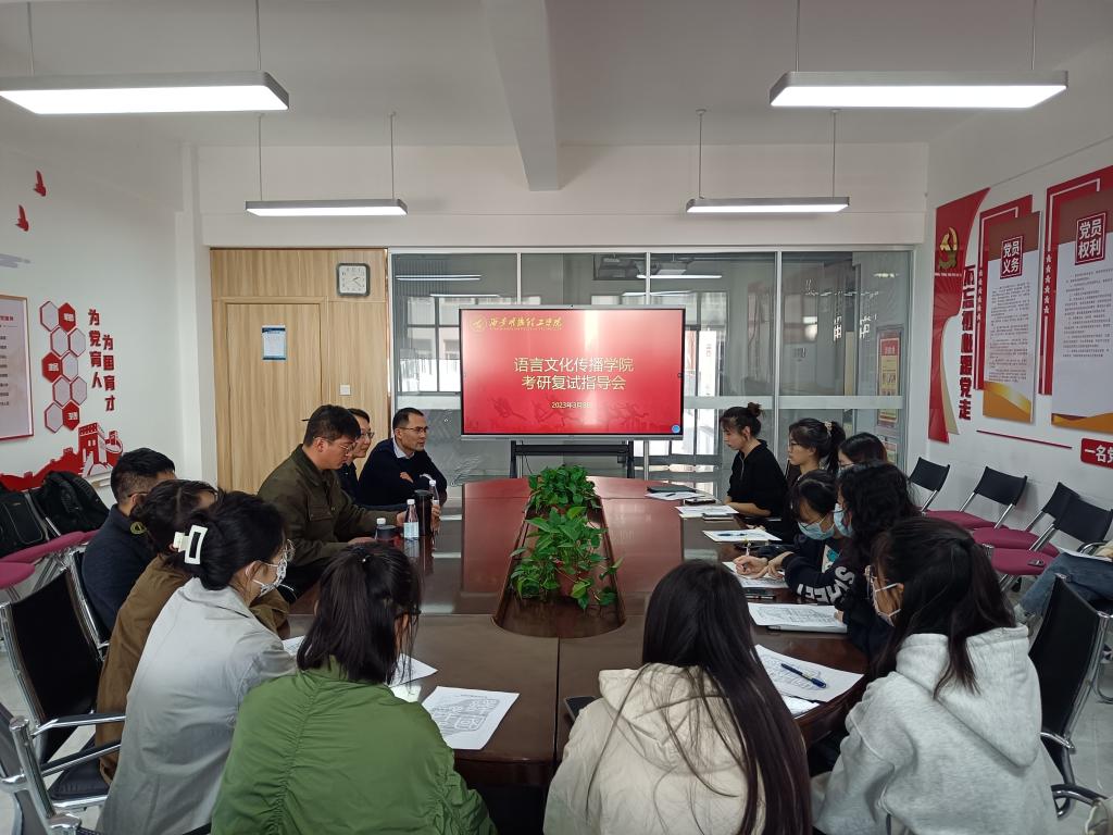 为助力2023届考研学子科学准备复试及调剂,掌握复试与调剂技巧,提高考研成功率,3月8日,语言文化传播学院邀请译国译民专业团队开展考研复试指导,学院党委书记赵旭东、副书记杨峰、毕业班辅导员以及考研学子参加此次会议。