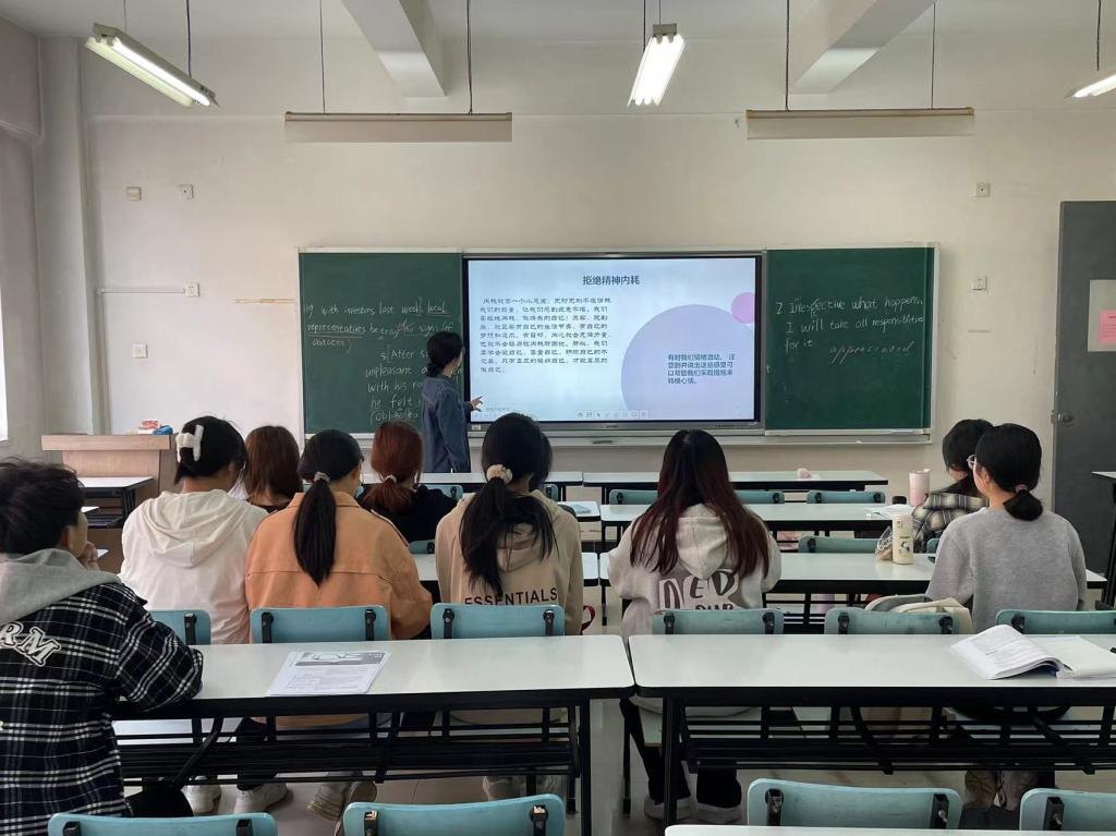 班会通过微课堂的形式,向学生普及心理健康的基本知识,包括健康的基本概念、重要性及其在个人成长中的作用。随后,学生分组讨论自己在学习和生活中遇到的压力和挑战,分享各自的应对策略和心得体会。最后,邀请有经验的心理委员和宿舍舍长分享他们的工作经验和案例,帮助学生了解如何在遇到心理困扰时寻求帮助。
