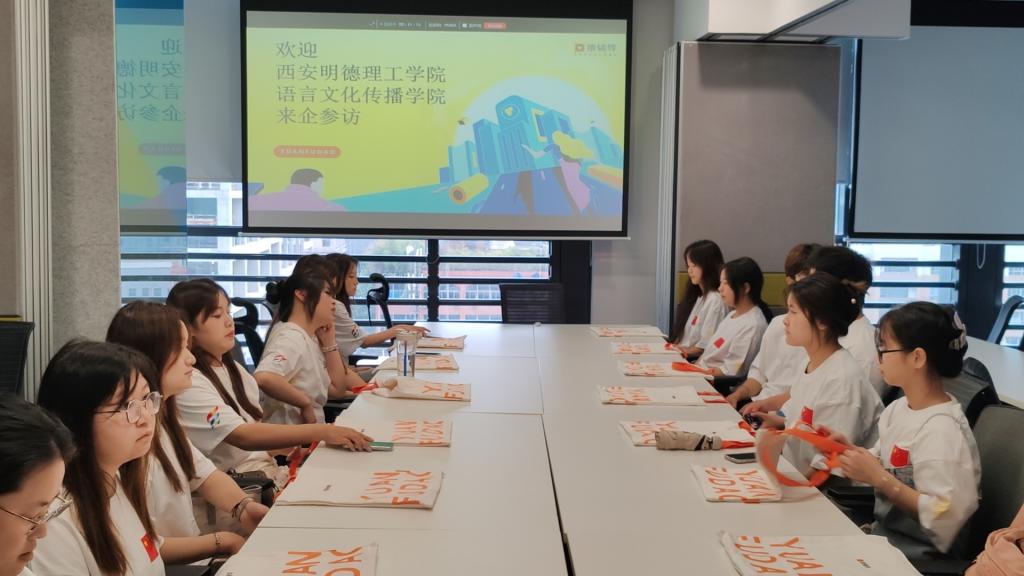 为推进“四百工程”,精准对接促就业,7月10日上午,语言文化传播学院党委副书记杨峰带领5名辅导员、2021级、2023级英语专业14名学生到猿辅导西安分公司进行参观学习。猿辅导西安分公司人力资源处张婉云热情接待了我院师生。