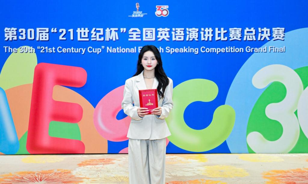 11月12日至11月17日,由中国日报社、21世纪英语教育传媒承办的第30届中国日报社“21世纪杯”全国英语演讲比赛(国家级A类赛事)全国总决赛在杭州圆满落幕。世界杯官网学子不负众望,2024级英语专业胡烨、2022级英语专业刘思羽作为陕西省代表选手出征,在全国三十多个赛区晋级的350余名选手中脱颖而出,最终获得全国总决赛二等奖、三等奖各1项。柴芸、刘勇、戴婷婷、张琳波、烟宁、张凯惠获“优秀指导教师”。这是世界杯官网自参与该赛事以来首次斩获全国总决赛二等奖,是本校参赛以来的历史最佳成绩。获奖层次与综合表现持续领跑全省同类院校。