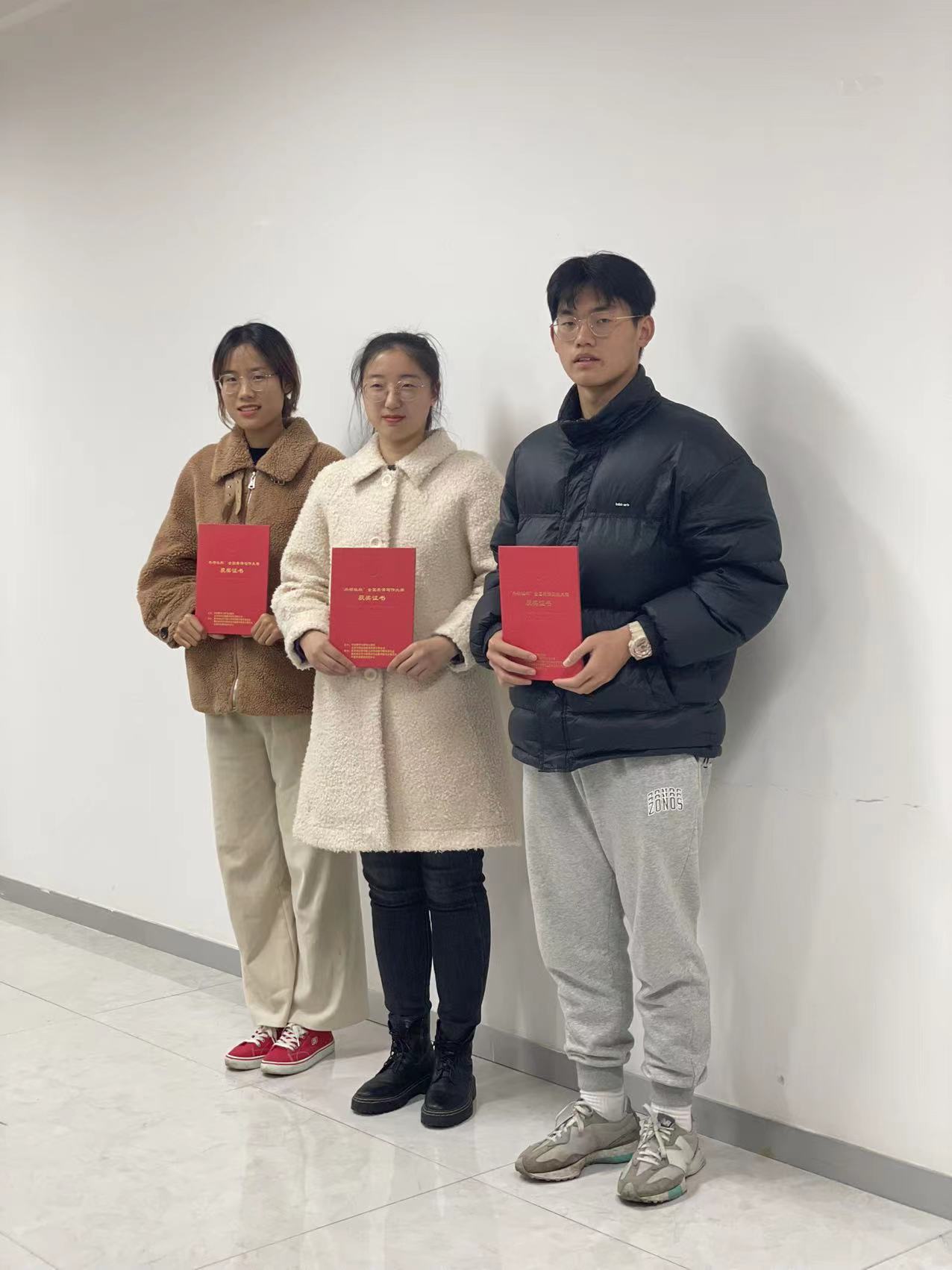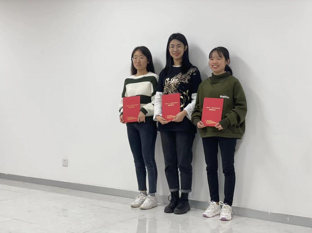 写作赛选手(从左至右):马雨欣,张倬萌,邓昊