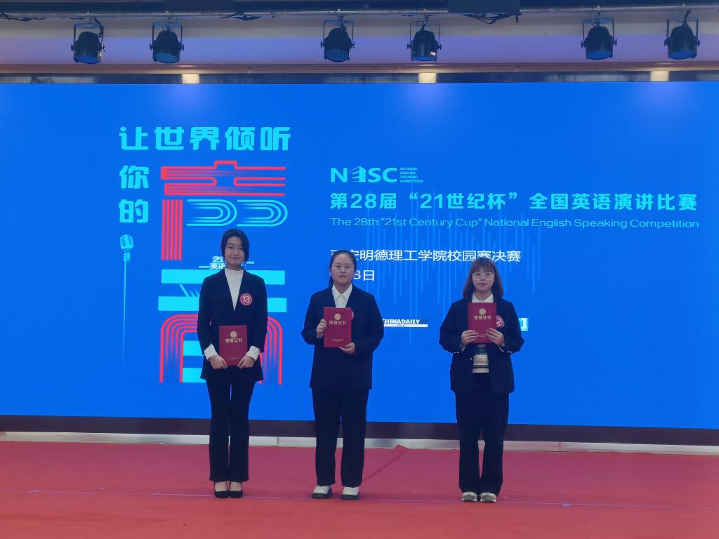 “21世纪杯”全国英语演讲比赛1996年由中国日报社创办,每年面向全国各年龄层人群举行。活动旨在提高中国青年讲好中国故事,加强我国国际传播能力建设、促进文明交流互鉴、推动构建人类命运共同体凝聚青春力量。4月3日,由语言文化传播学院承办的第28届“21世纪杯”全国英语演讲比赛校园决赛圆满结束。出席本次比赛的老师有:语言文化传播学院王卫强教授、李云平副教授、陈虹副教授、高杰老师以及郭娟娟老师。