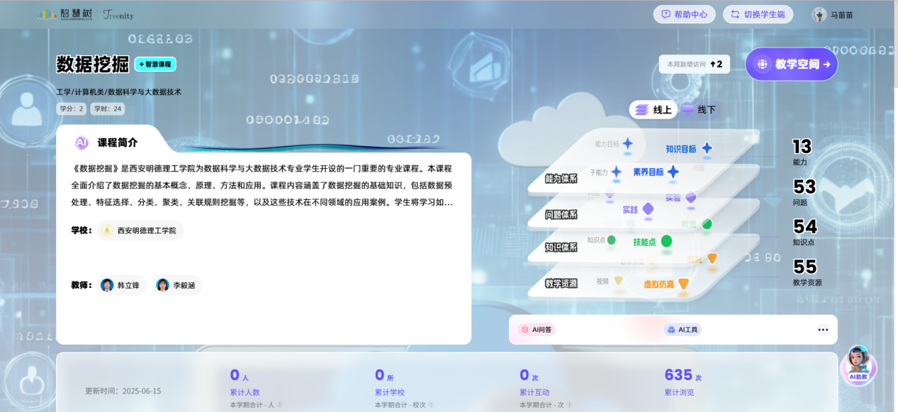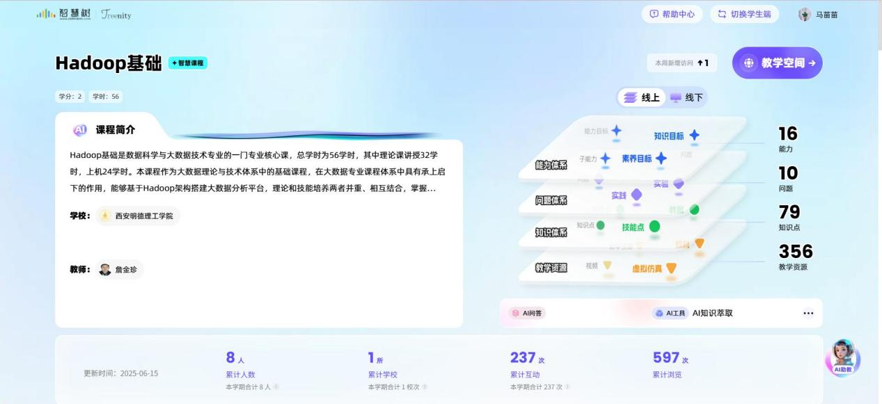 课程建设:建成《Hadoop基础》、《数据挖掘》两门智慧树知识图谱示范课程。