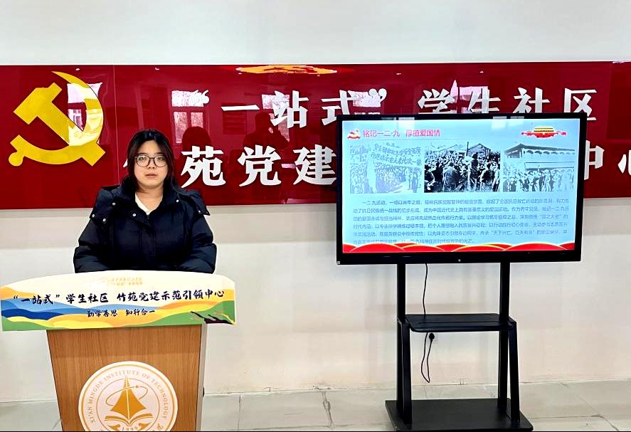 为纪念“一二・九”运动九十周年,传承红色基因,引导支部党员厚植爱国情怀、强化使命担当,在新时代征程中砥砺奋进。12月5日,信息工程学院学生第一党支部在“一站式”学生社区竹苑党建示范引领中心开展“铭记一二・九,厚植爱国情”主题党日活动。活动由支部书记张蓉主持,全体党员参加。