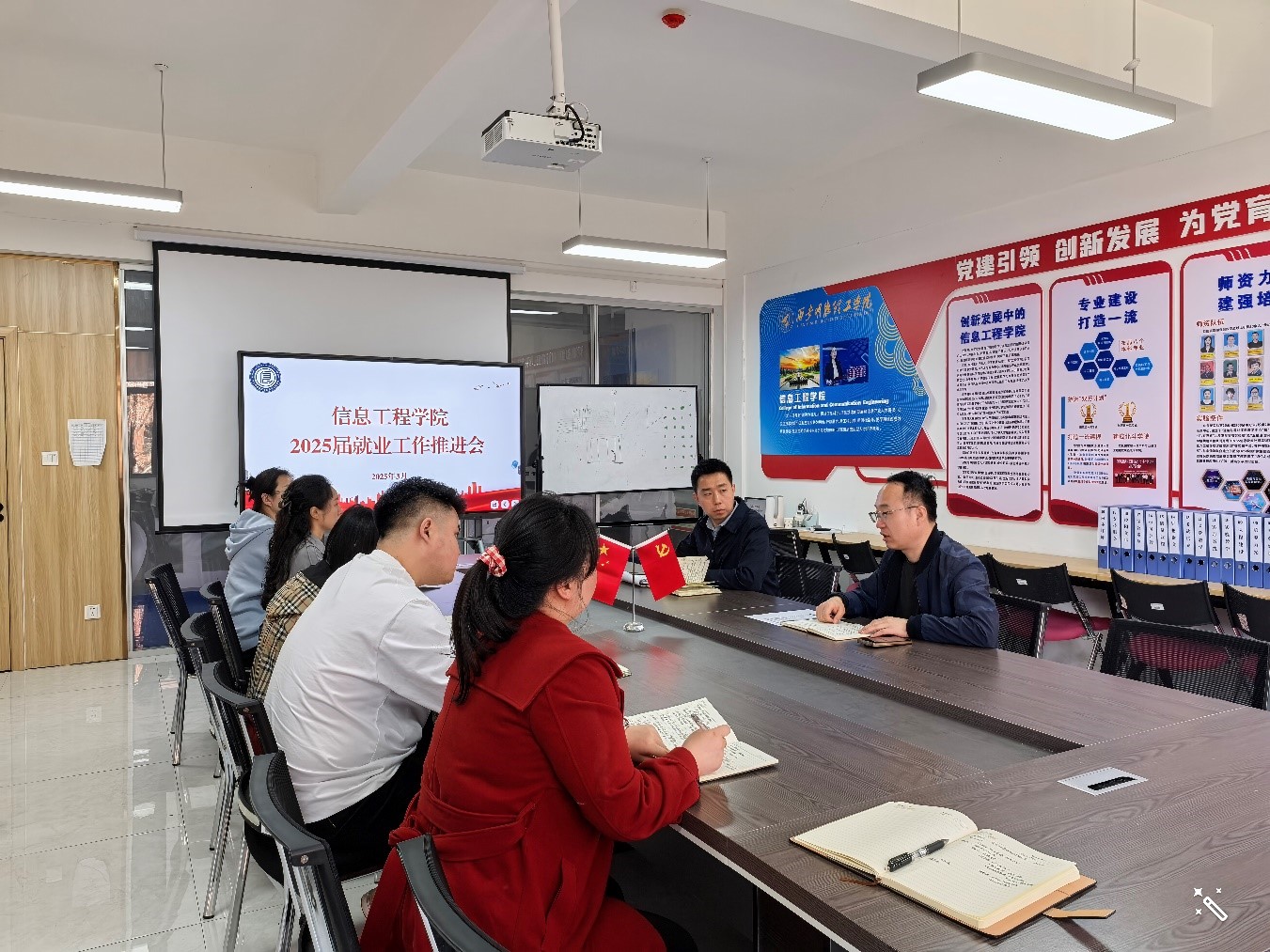 为进一步促进学院2025届毕业生更加充分就业,提升就业质量。3月25日下午,信息工程学院在明志楼北206会议室召开2025届就业工作推进会。学院党委书记和毕业班辅导员参加会议,会议由学院党委副书记高长江主持。