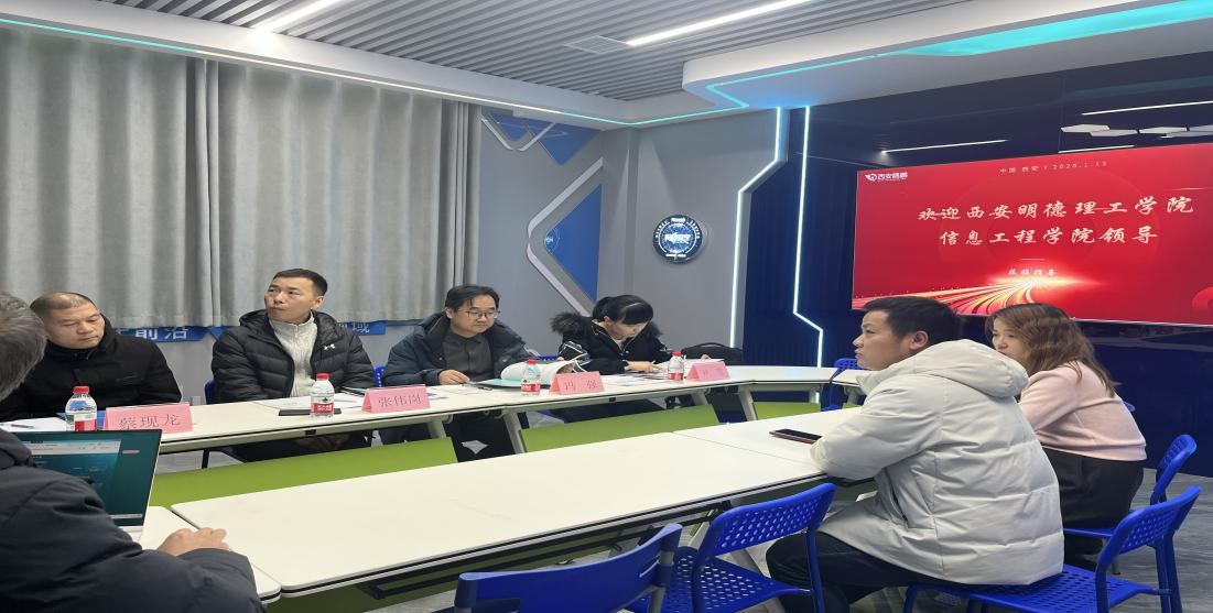 为深入了解计算机行业发展前沿,拓展校企合作渠道,精准对接人才培养与市场需求,贯彻落实教育厅及学校“优企引才”专项行动部署。2026年1月13日,信息工程学院院长冯强、副院长张伟岗、办公室主任尹莹、计算机科学与技术专业负责人蔡现龙一行4人,赴西安欧鹏互联科技有限公司进行参观访问。公司负责人宋永林总经理热情接待了来访人员,并组织了深入的交流活动。