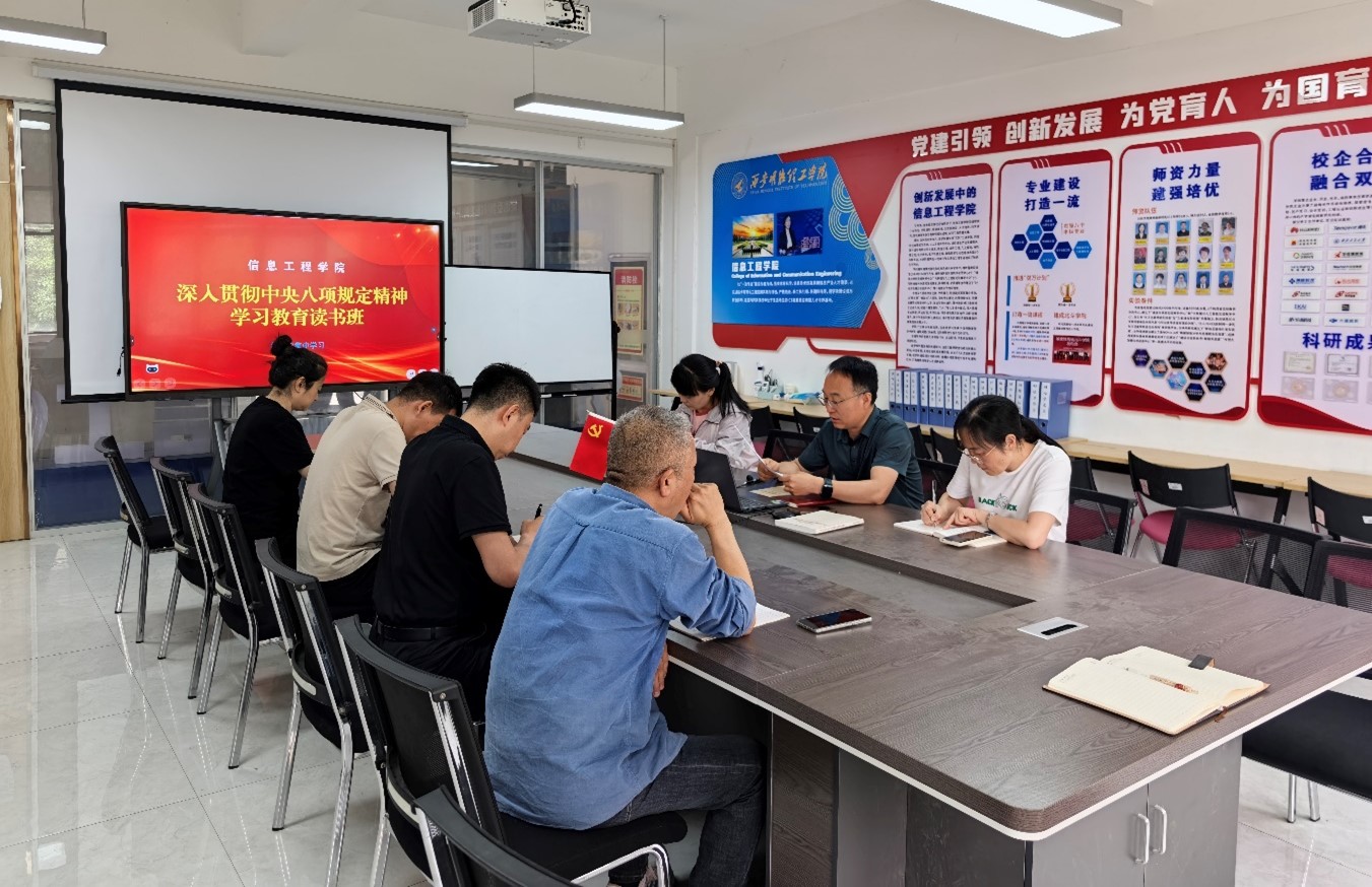 4月30日上午,信息工程学院在北206会议室开展深入贯彻中央八项规定精神学习教育读书班第三次集中学习,学院党政班子成员参加,学习活动由党委书记肖千春组织。