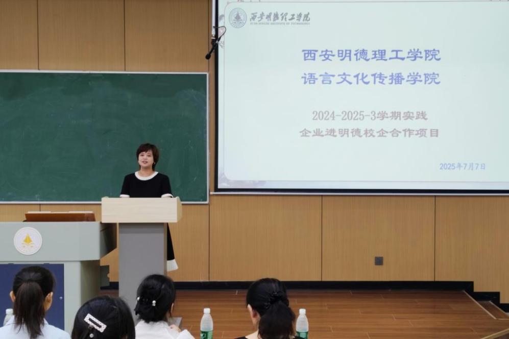 2025年7月7日,西安长安悦美小学教师团队应邀赴语言文化传播学院参加“三学期实践——企业进明德校企合作项目”活动。此次活动旨在深化校企合作,推动人才培养模式创新,为学生三学期实习助力。参加活动的有柴芸副院长、英语专业负责人霍小静教授、教育方向负责人曹明教授、教育方向实习指导老师及学生。活动由曹明教授主持。