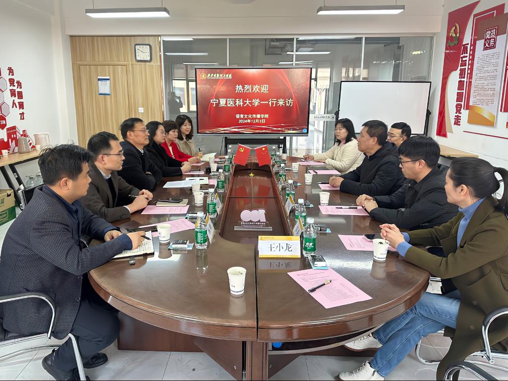 12月3日下午,宁夏医科大学外国语学院党总支书记郝向利、副院长王军礼、实验中心主任张炜等一行来我院进行调研交流,学院领导班子成员参加座谈,会议由语言文化传播学院院长马庆林主持。