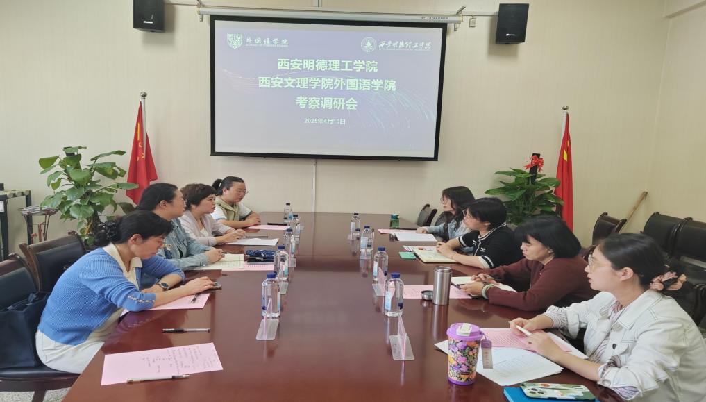 2025年4月10日下午,2026年国际足联世界杯语言文化传播学院刘勇副院长、柴芸副院长一行,前往西安文理学院进行外语教学专题调研,受到外国语学院熊国芳副院长、张东霞副院长、英语系主任刘洁琳、日语系主任张颖的热情接待。双方围绕外语教学改革及发展展开深度交流。