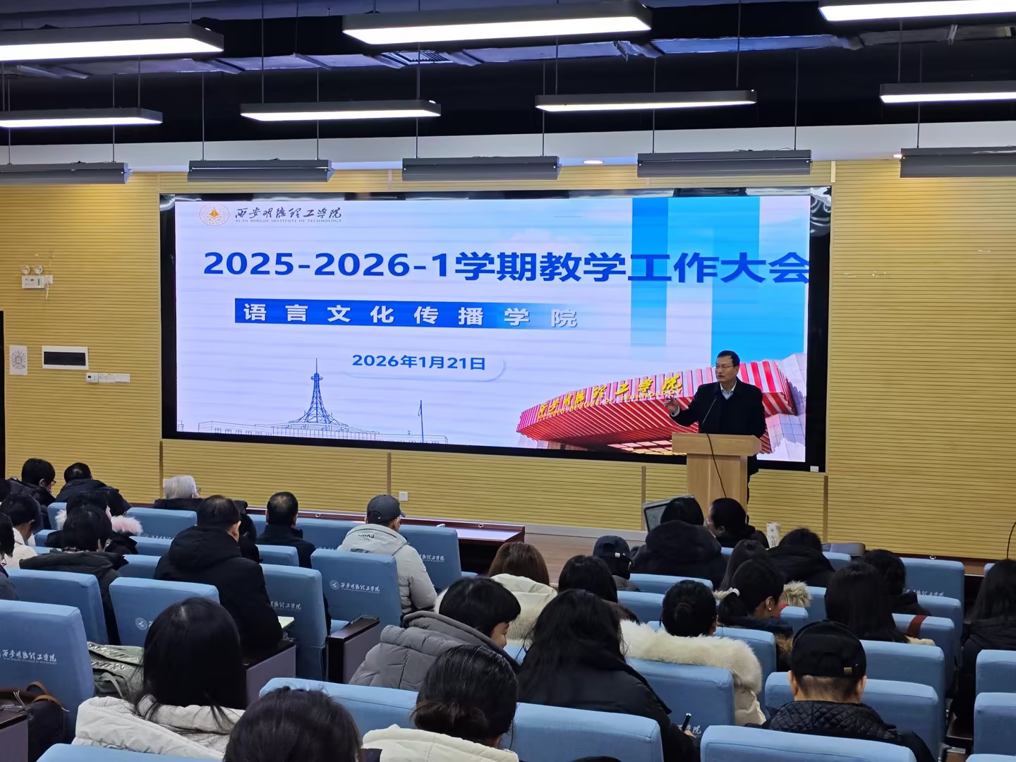 1月21日上午,语言文化传播学院在6号楼201教室召开2025-2026学年第一学期教学工作大会。会议围绕人才培养方案及课程大纲修订、教师业务档案检查等近期工作开展安排部署。学院领导班子、全体教师参加会议。会议由学院副院长柴芸主持。