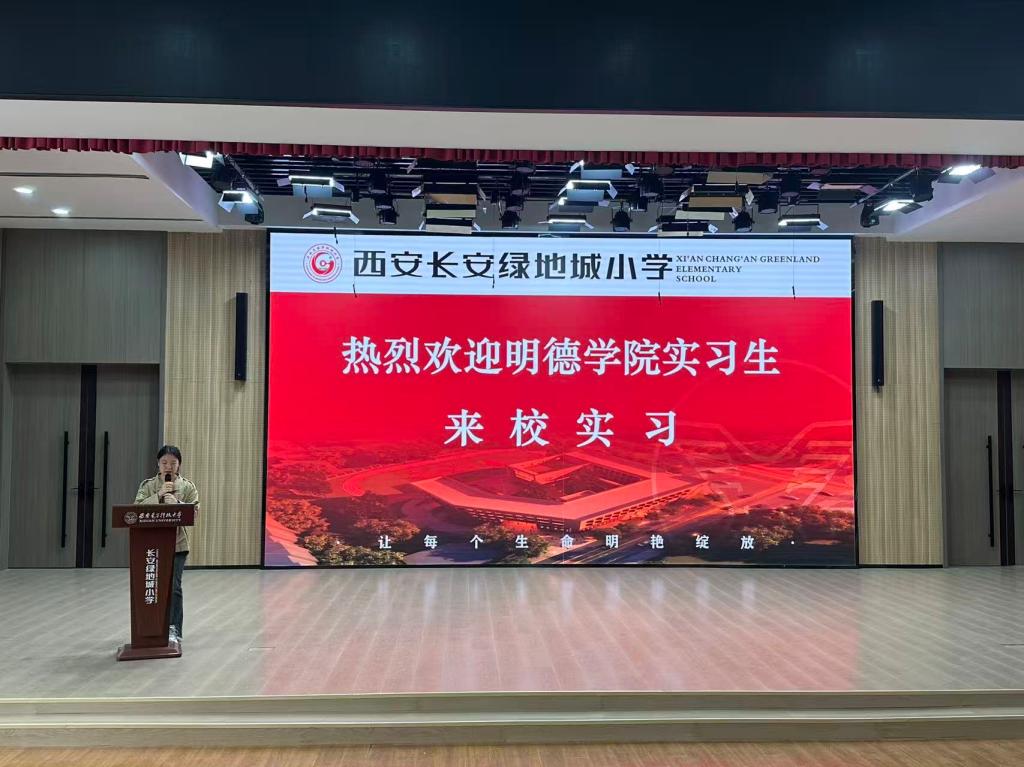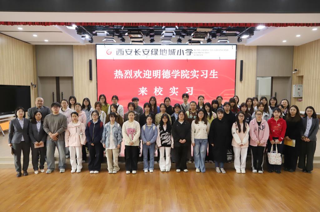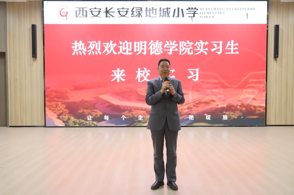 实习生通过观看西安长安绿地城小学宣传片,全面了解学校办学特色与育人成果。裴翔就实习事宜作详细部署,实习生将按照1—6 年级 “一班一人” 定岗实习,每周承担 3 节英语课程教学,并可跨年级、跨学科听课学习;部分实习生还将参与各部门教研交流。学校由老中青教师组成的指导团队将全程提供专业引领,实习结束后将评选优秀实习生并予以表彰。此次实习既为学子搭建了理论联系实际的实践平台,也助力其快速提升教学能力、完成角色转变,进一步深化了校地协同育人实效。