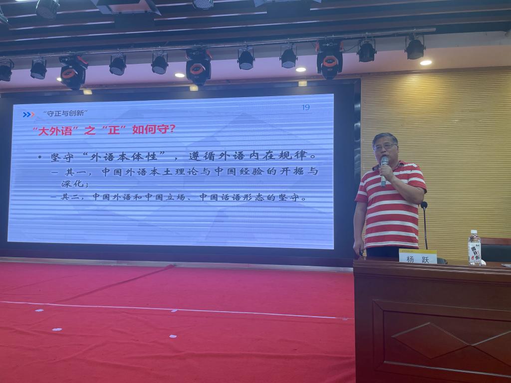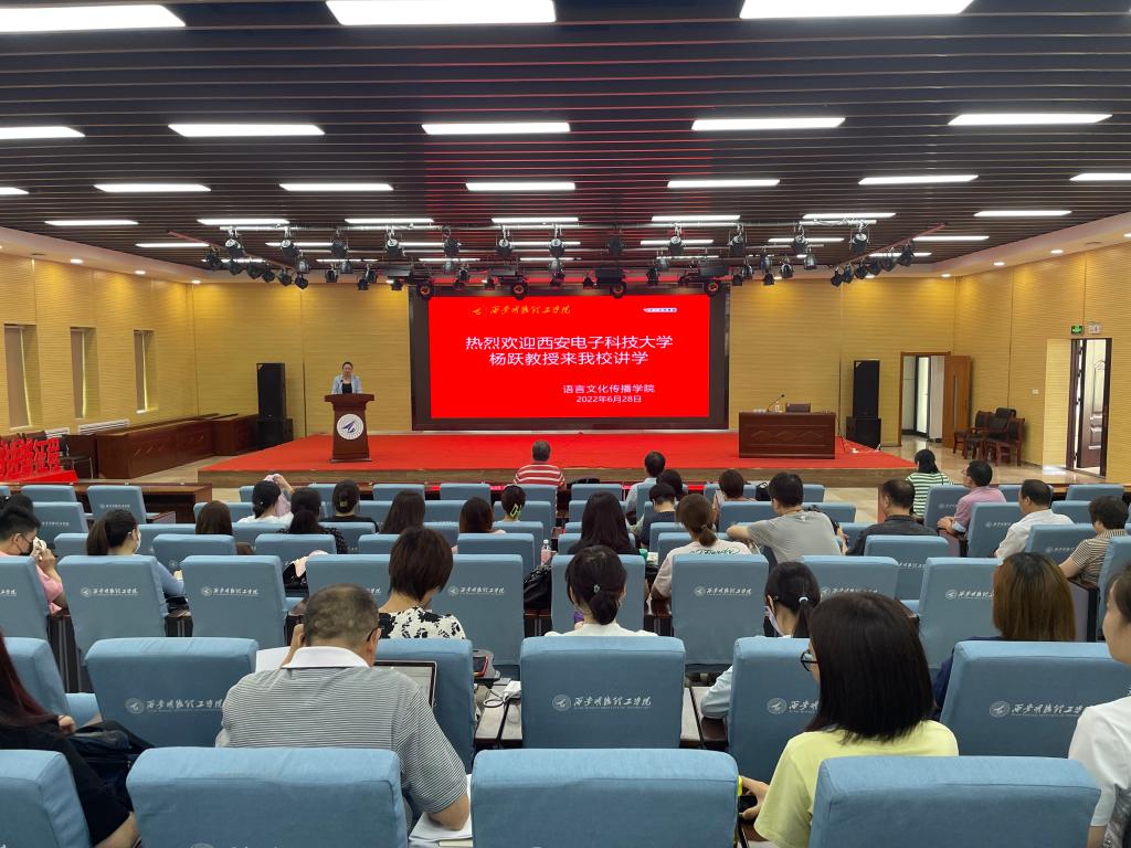 6月28日下午,在建德楼203,教育部大学外语教学指导委员会委员(2006-2017),全国高等学校大学外语教学研究会常务理事,西安电子科技大学杨跃教授为语言文化传播学院全体教师作了题为《“新文科”背景下外语教师之发展——守正与创新》的学术报告。报告由语言文化传播学院副院长刘勇教授主持。