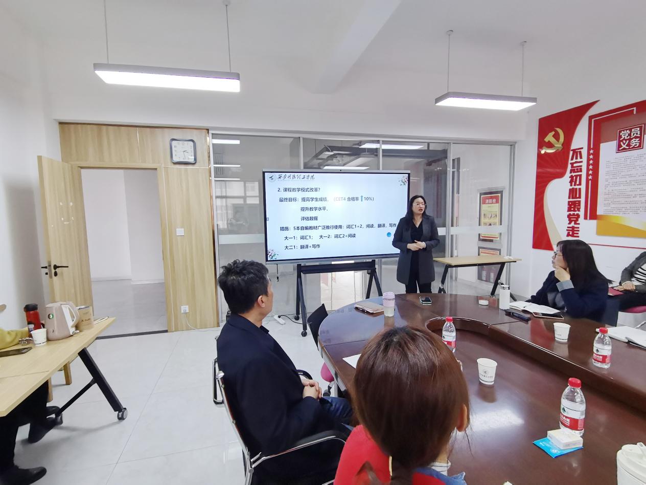 结合大学英语教学实际,刘勇鼓励大学英语教师积极探索“以赛促学、以赛促教”模式。她指出,大学英语教师应鼓励、指导学生参与各类学科竞赛,激发学生的英语学习兴趣,增强学生的学习动能。为提高学生大学英语四六级考试通过率,她也对大学英语课程教学模式的改革提出了具体要求,包括更新教学内容和方法、编写系列自编教材,模块化教学等。