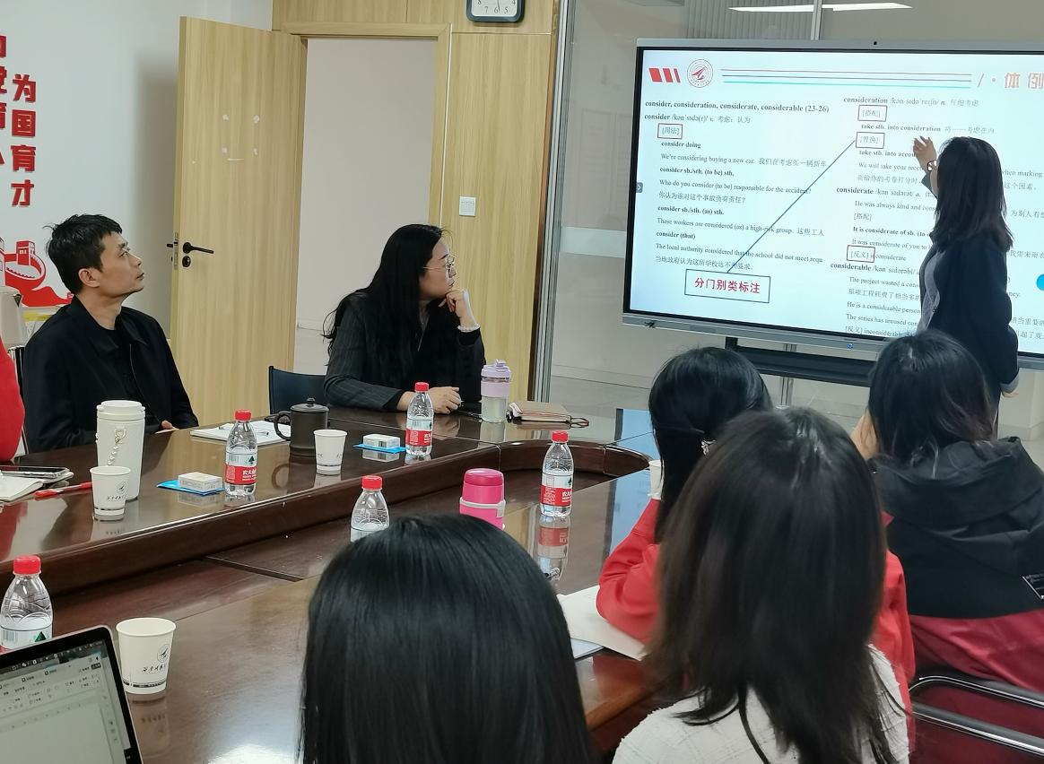 为确保自编教材《大学英语词汇进级》I在课堂上的有效使用,研讨会还邀请大学英语B类组长游瑞华副教授向各位介绍了该教材的编写目的、体例、特色创新及亮点,并从教师“如何教”,“学生如何学”等方面进行了详细解读。
