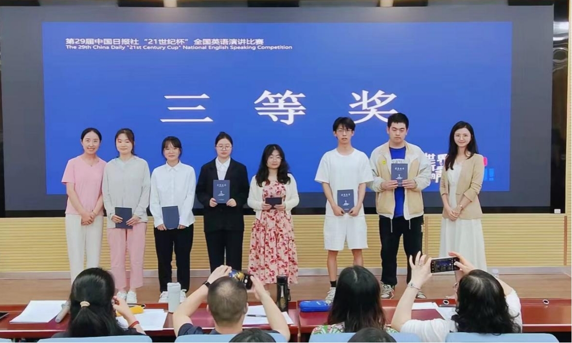 “21世纪杯”全国英语演讲比赛由中国日报社创办于1996年,每年面向全国各年龄层人群举行,旨在提高中国青年讲好中国故事的能力水平,为加强我国国际传播能力建设、促进文明交流互鉴、推动构建人类命运共同体凝聚青春力量。本届世界杯官网选拔赛分为已备演讲初赛(The revival of traditional culture)和即席演讲决赛两个阶段。在戴婷婷、何勃毅、张珂和课程教师的精心筹备、组织与动员下,全校各专业、各年级共有180余名同学报名参加了本届比赛。
