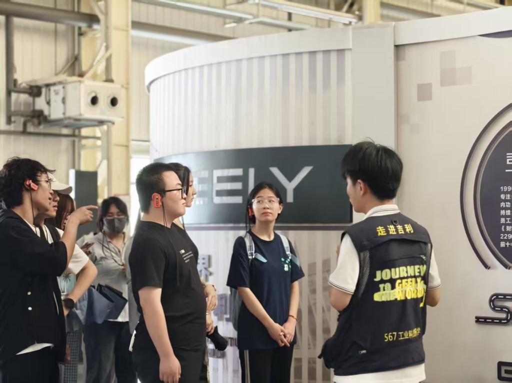 在吉利汽车工作人员的热情接待下,师生们实地参观了整车装配线、焊接厂、冲压车间。通过与技术人员的互动交流,大家对整车总装、自动化车间管理、电池热管理技术等关键技术环节有了直观而深入的理解,切身体会到能源与制造、经济与技术之间的深度融合,深入了解了吉利汽车的发展历程、技术创新成果及新能源战略布局。