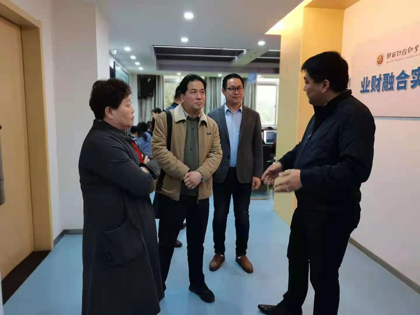 在新道科技股份有限公司西北区总经理张桐的陪同下,参观了云财务共享中心、互联网+现代学徒制会计工场协同创新中心以及业财融合实践区,充分认识产业学院对人才培养的意义。