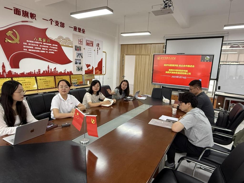 为深化校企合作,拓宽毕业生就业渠道,精准推进实习就业工作,5月15日,经济与管理学院同陕西天地财务集团有限公司在明志楼北606洽谈学生实习实训事宜。金融产业学院副院长刘敏、会计学专业负责人孙琳、教师张瑞芝、财务管理专业教师梁静,陕西中鸿财税研究院及陕西天地财务集团有限公司代表共同参加洽谈。洽谈会由刘敏主持。