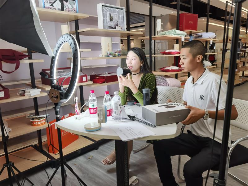 千巢丹尼尔电商孵化基地负责人杨峰总经理热情接待了我院一行,详细介绍了孵化基地的具体工作内容及管理模式,并带领我院的领导和老师参观了孵化基地的工作环境、各种直播间以及销售的产品,讲解了千巢丹尼尔孵化基地的发展历程,他表示,“直播+电商”的销售模式已经成为当下主流模式,尤其在疫情时代下,这种销售模式更加发挥了其不可替代的作用。