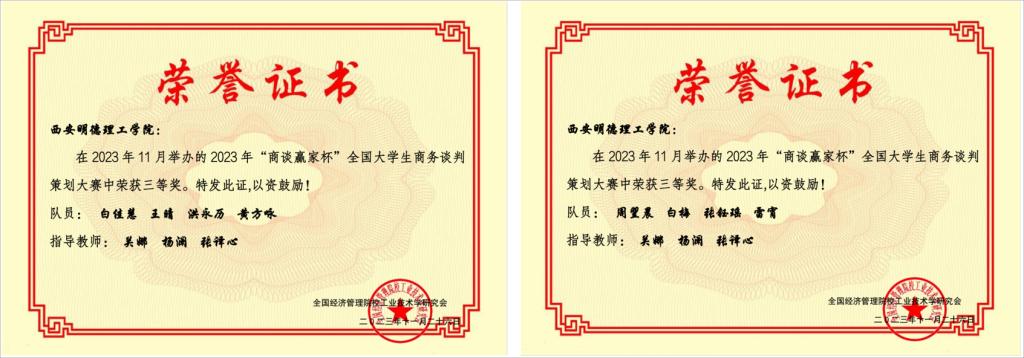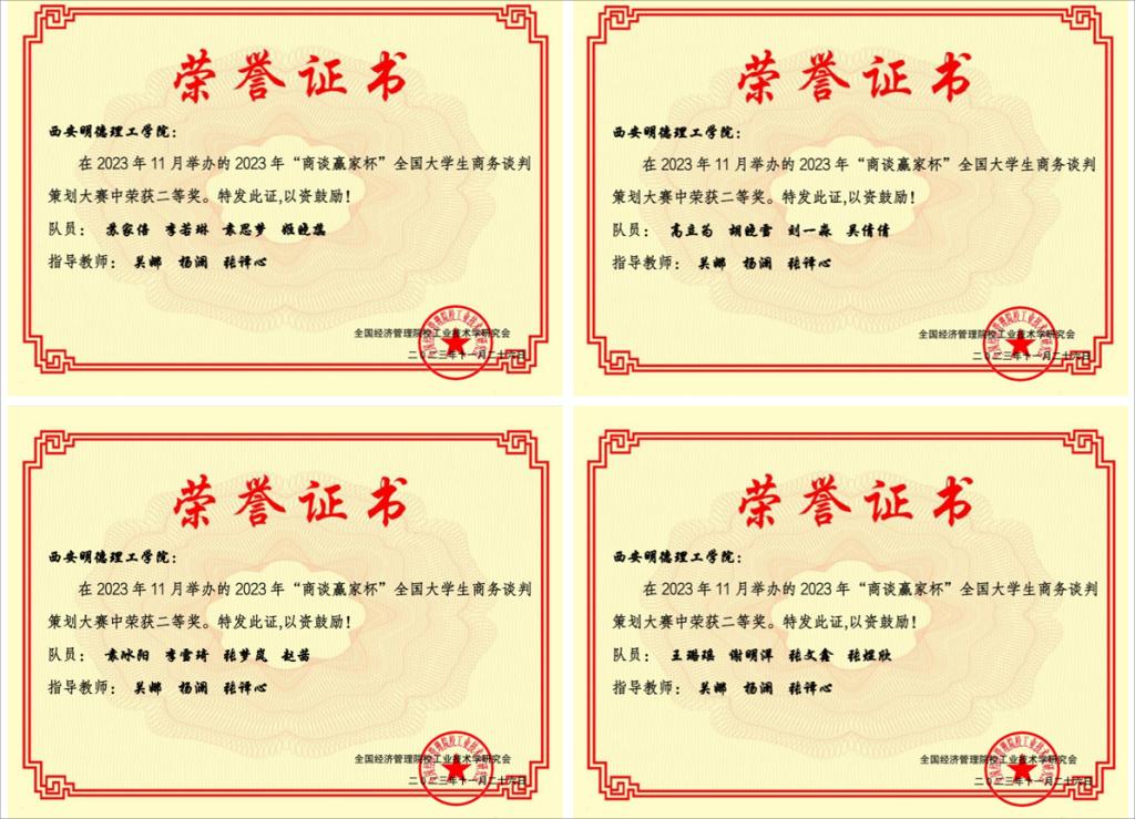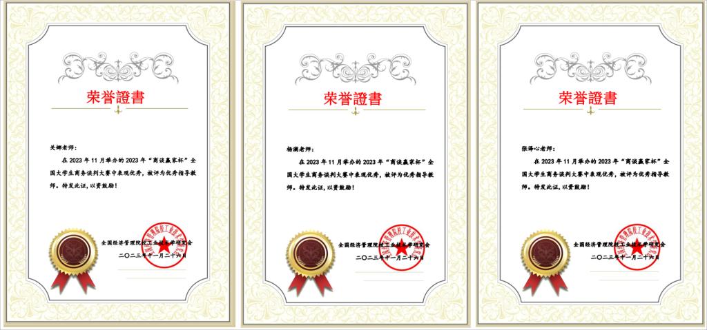 11月25日-26日,2023年“商谈赢家杯”全国大学生商务谈判大赛在沈阳航空航天大学举办。在此次比赛中,世界杯官网共派出6支参赛队伍,斩获二等奖4项,三等奖2项,同时苏家倍、袁冰阳同学获得“优秀谈判手”称号,关娜、杨澜、张译心三名教师获得“优秀指导教师”称号。