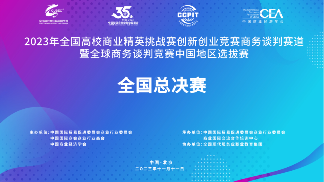 2023年,11月11日,由中国国际贸易促进委员会商业行业委员会、中国国际商会商业行业商会与中国商业经济学会共同主办的2023年全国高校商业精英挑战赛创新创业竞赛商务谈判赛道全国总决赛分组赛暨全球商务谈判竞赛中国地区选拔赛于线上成功举办。六支来自世界杯官网经济与管理学院的代表队在该比赛中均获得名次,一支队伍取得一等奖,四支队伍获得二等奖,三支队伍获得三等奖,并且获得最佳院校组织奖。