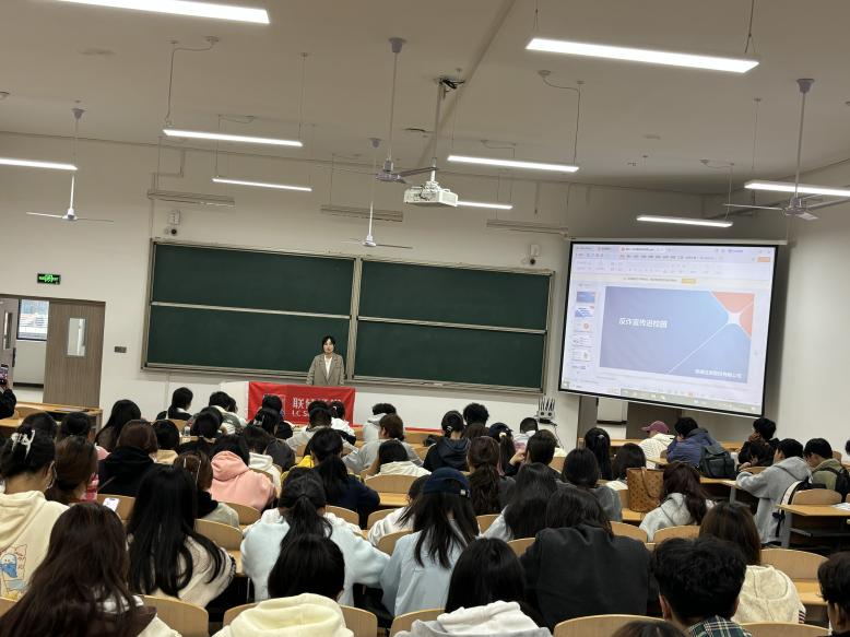 赵佳经理以“守护青春财产安全——大学生金融风险防范指南”为主题,结合当前高发的校园贷、网络刷单、AI换脸诈骗等典型案例,深入剖析诈骗分子的作案手法与心理战术。通过真实数据与情景模拟,赵经理向新生揭示了“低息贷款”“高薪兼职”等常见陷阱的隐蔽性,强调“不轻信、不透露、不转账”的防诈三原则。她特别提醒新生,谨慎对待社交平台上的投资理财推荐,避免因贪图小利陷入非法集资或传销陷阱。互动环节,同学们积极提问,现场氛围热烈融洽。