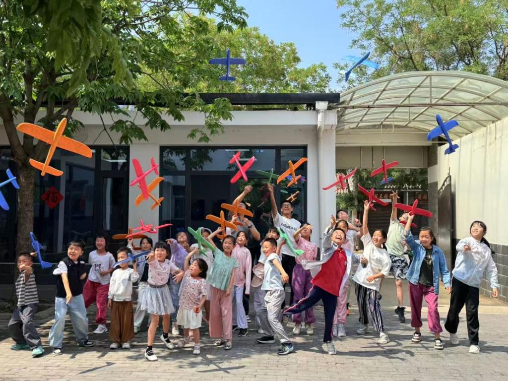 “放飞梦想”纸飞机环节,孩子们认真跟随志愿者学习调整机翼角度、理解气动布局原理,在专注观察纸飞机飞行距离的过程中,逐渐懂得“适当压力是成长助力”的深刻道理。纸飞机在空中划过的每一道弧线,都承载着孩子们对未来的憧憬和希望。