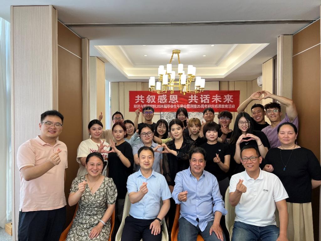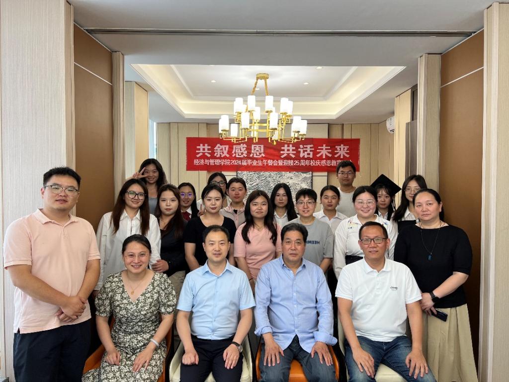 6月25日,经济与管理学院在学校沣味餐厅举办2024届毕业生午餐会暨感恩教育活动,学院院长郭鹏教授、党委书记兼行政副院长何文举、副院长许萍、副书记冯纪潮、办公室主任张蓓、教师代表秦东方、毕业班辅导员同50余名毕业生代表共谈大学成长和未来发展。活动由何文举主持。
