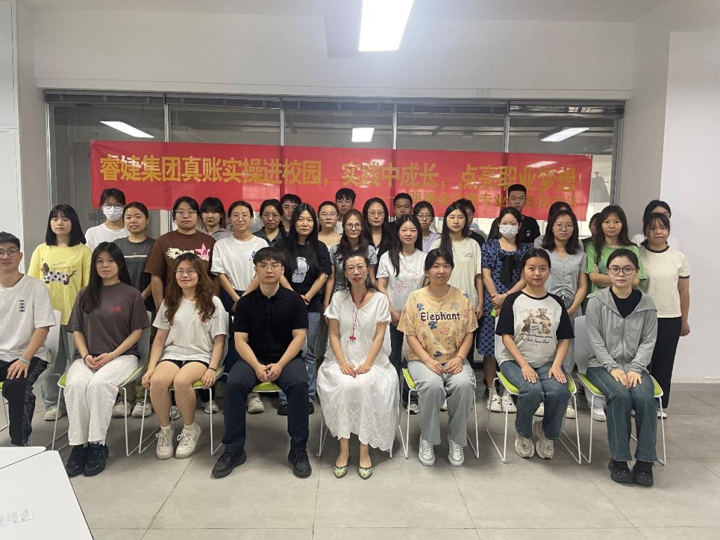 动员仪式结束后,正式开启为期四周的校内专业实习,本次实践教学分为集中实习和分散实习两个阶段,校内集中实习由睿婕集团财务负责人和会计师将企业真实账目带进校园,为学生实习提供充足资源。