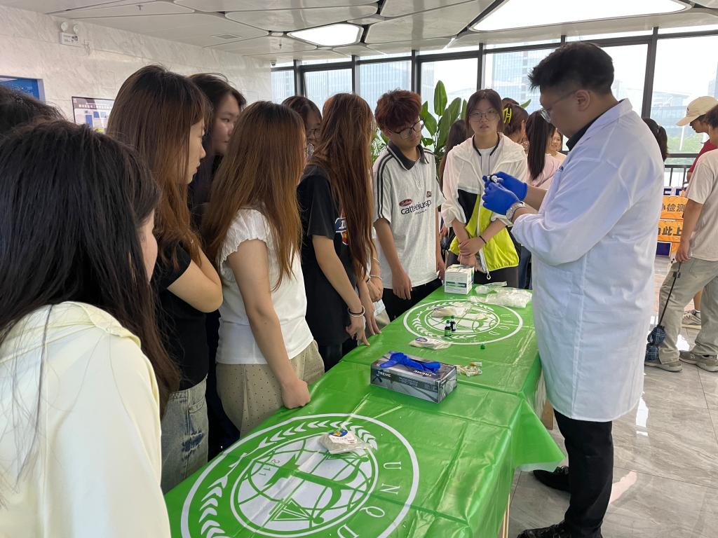 在工作人员的引导下,师生们来到了实验室,参观了食品前处理区以及检测室,各式各样的先进仪器设备映入眼帘,从精密的分析仪到高效的色谱仪,每一台设备都承载着保障产品质量的重任。在讲解员的耐心解说下,学生们不仅了解了这些仪器的功能与应用,感受到了科技与质量之间的紧密联系,加深了对质检工作的了解。师生们还参与了检测大米新鲜度以及澄清水的小实验,通过亲手操作、观察实验结果,学生们了解了质检工作的流程,激发了他们对专业知识的兴趣与热爱。