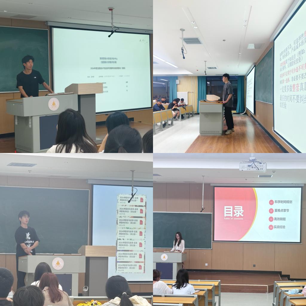分享环节,支部党员祝欣怡、秦科威、路浩洋及发展对象汪宇豪分别围绕备考策略、重点解析、资源利用及实战技巧等四个方面作了经验交流。祝欣怡凭借对考试节奏的精准把控和丰富的个人实战经验,着重分享了如何合理规划备考时间,确保复习工作有条不紊地进行;秦科威结合历年考试真题和命题规律,深入解读了各章节的核心考点与易错点,帮助同学们更好把握考试重点,做到有的放矢地备战考试,提高了复习的针对性和有效性;路浩洋聚焦备考工具和备考资料的选择与使用,介绍了各类优质备考书籍、在线学习平台、模拟题库等资源,分享了自己在使用这些资源过程中的心得体会,让同学们能够充分利用丰富的学习资源,提升学习效率;汪宇豪围绕考试真题及解题技巧,通过分析历年真题,总结出了一套行之有效的解题思路和方法,结合实际案例进行详细演示,帮助同学们熟悉考试题型和命题风格,掌握答题技巧,提高解题速度和准确率。同学们纷纷表示,通过学习优秀学长们的经验分享,不仅对初级会计资格证考试有了更全面、更深入的了解,还增强了应考的信心和决心。