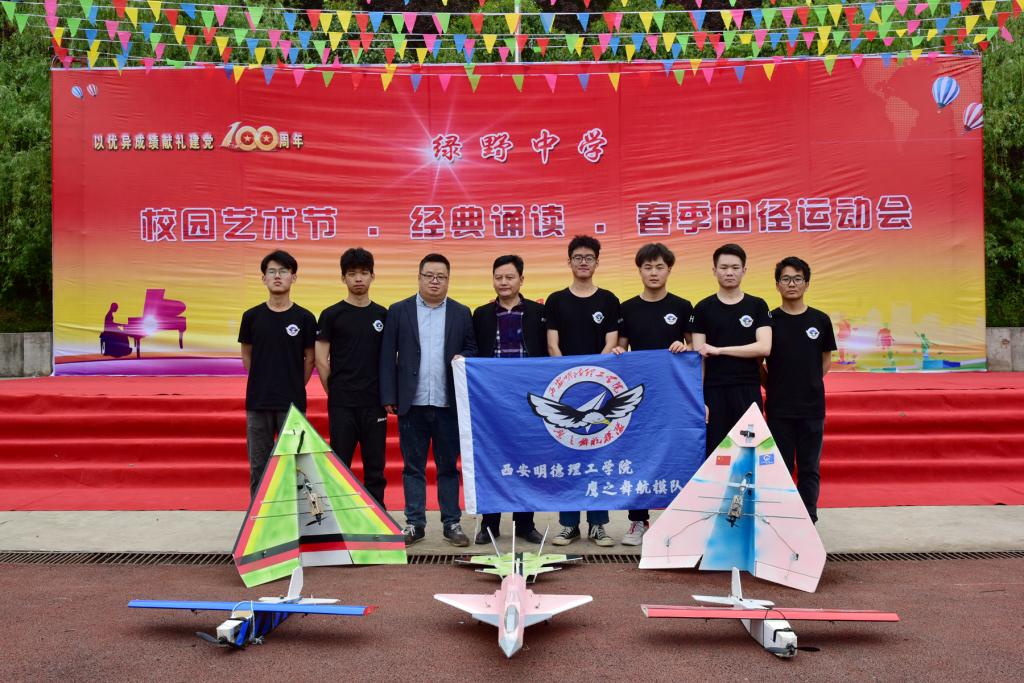 为传“递明德情怀,讲好明德故事”,加强学校与生源中学之间的协作关系,促进交流合作,4月22日招生就业中心应邀,由招生专干张永强及学院张昆鹏老师带队,携我院“鹰之舞”航模队及信息工程学院学生舞蹈队赴武功县绿野中学参加运动会暨艺术节开幕式表演活动。