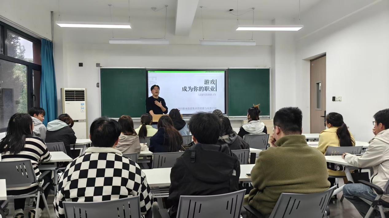 宣讲伊始,西安新木创意公司宣讲人高业荣率先带来分享。他介绍,公司自2014年成立以来,专注于游戏产品的研发与制作,与多家行业头部公司均有长期战略合作协议,始终秉持“每一份设计都是对美的探索和实践”的理念,团队始终以“精致与创新并重”为标准,其服务涵盖全程美术方案、项目美术中心、游戏自主研发等多元场景,既为设计师提供施展才华的广阔平台,也助力成员在实战中理解“设计解决实际问题”的核心逻辑。