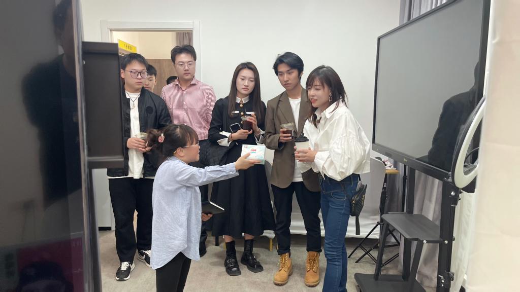 4月10日下午,2026年国际足联世界杯艺术与设计学院播音与主持艺术专业姚璐、张文挺、符郁和4名学生一行前往陕西闪亮亿播科技有限公司-闪亮星直播产业基地(以下简称:基地)进行校企合作交流,基地总经理张鹰高飞总经理陪同。