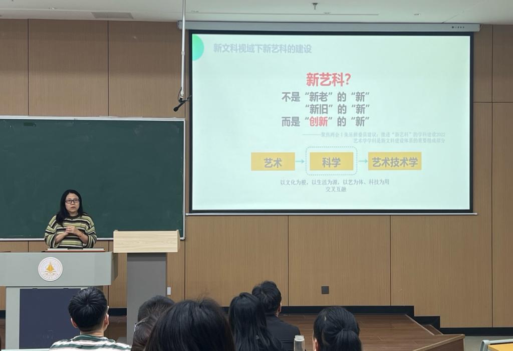 10 月 9 日下午,艺术与设计学院在 7#教学楼 201教室举办“新文科视域下新艺科的建设”教学理念与人才培养模式培训会,艺术与设计学院全体教师参加培训会。本次培训由艺术与设计学院副院长冯强教授主持,西安邮电大学数字艺术学院石云平副教授主讲。