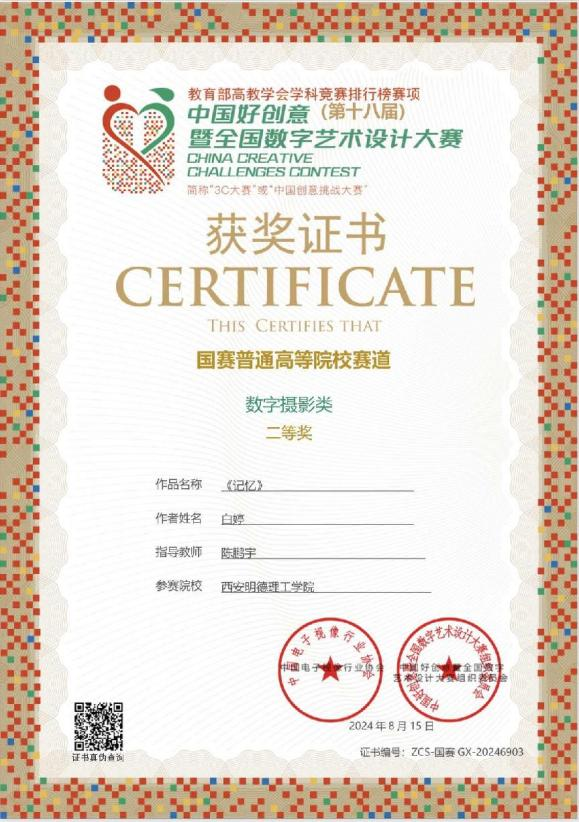 中国好创意暨全国数字艺术设计大赛(英文名:“China creative challenges contest”,简称“3c大赛”或者“中国创意挑战大赛”),是入选教育部中国高等教育学会发布的《全国普通高校学科竞赛分析报告》赛项,也是我国第一个以数字艺术设计、数字创意及数字媒体、数字技术创新领域各专业综合类规模大、参与院校多、影响广泛的权威赛事。