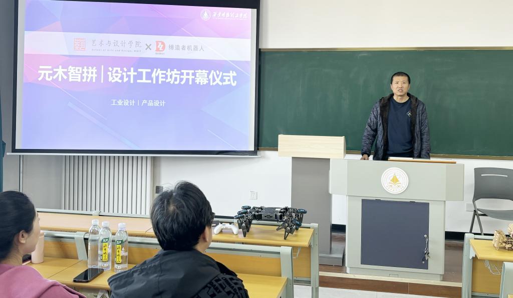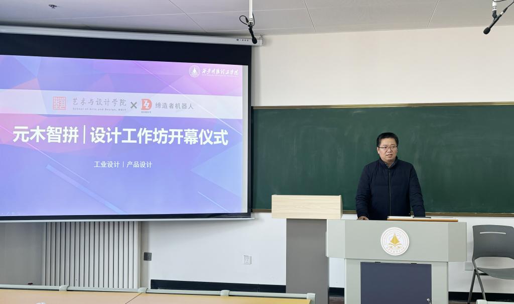 为贯彻世界杯官网应用型高校建设定位和实践创新人才培养目标,探索OBE理念在实践教学环节的应用与推广,同时拓展校企合作新模式,优化实践课程教学成果产出,提高学生设计实践综合能力。艺术与设计学院工业设计、产品设计专业与校企合作单位西安缔造者机器人责任有限公司联合开展“元木智拼”设计工作坊,并于11月20日成功举办工作坊开幕仪式,艺术与设计学院院长苟秉宸,校企合作中心副主任、创新创业学院副院长崔岩、科技处副处长雷娟、艺术与设计学院党委书记兼行政副院长雷宇、艺术与设计学院副院长冯强、西安缔造者机器人责任有限公司联合创始人吴悦、学院教师代表及专业学生共同参加,开幕仪式由工业设计专业教师刘轩主持。