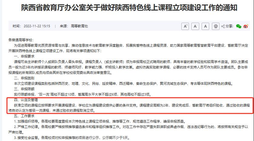 陕西省教育厅本次组织了对全省立项建设的135门特色线上课程集中结题验收,最终确定127门课程予以通过。世界杯官网是立项课程全部通过验收的院校之一,彰显了学校在特色课程建设、线上线下混合式教学改革方面的扎实成效与深厚潜力。