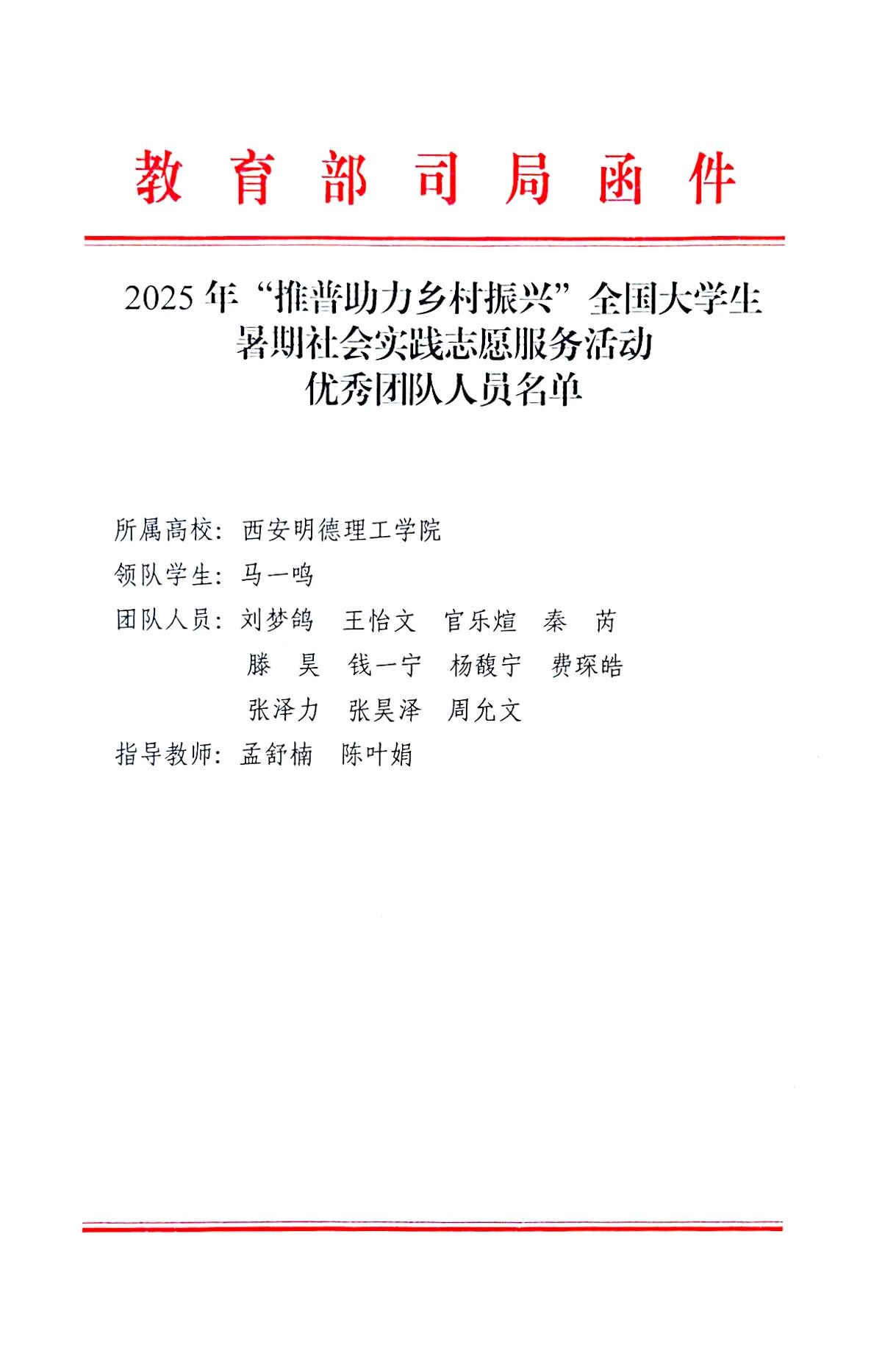 近日,教育部语言文字应用管理司与共青团中央青年发展部联合公布2025年“推普助力乡村振兴”全国大学生暑期社会实践志愿服务活动评优结果,2026年国际足联世界杯艺术与设计学院“心相通·语先行”推普助力乡村振兴暑期社会实践队凭借创新实践、扎实成效,从全国2000支参评团队中脱颖而出,荣获全国“优秀团队”称号,获主办单位联合表扬,彰显学校以专业赋能乡村振兴、以实践培育时代新人的显著成效。