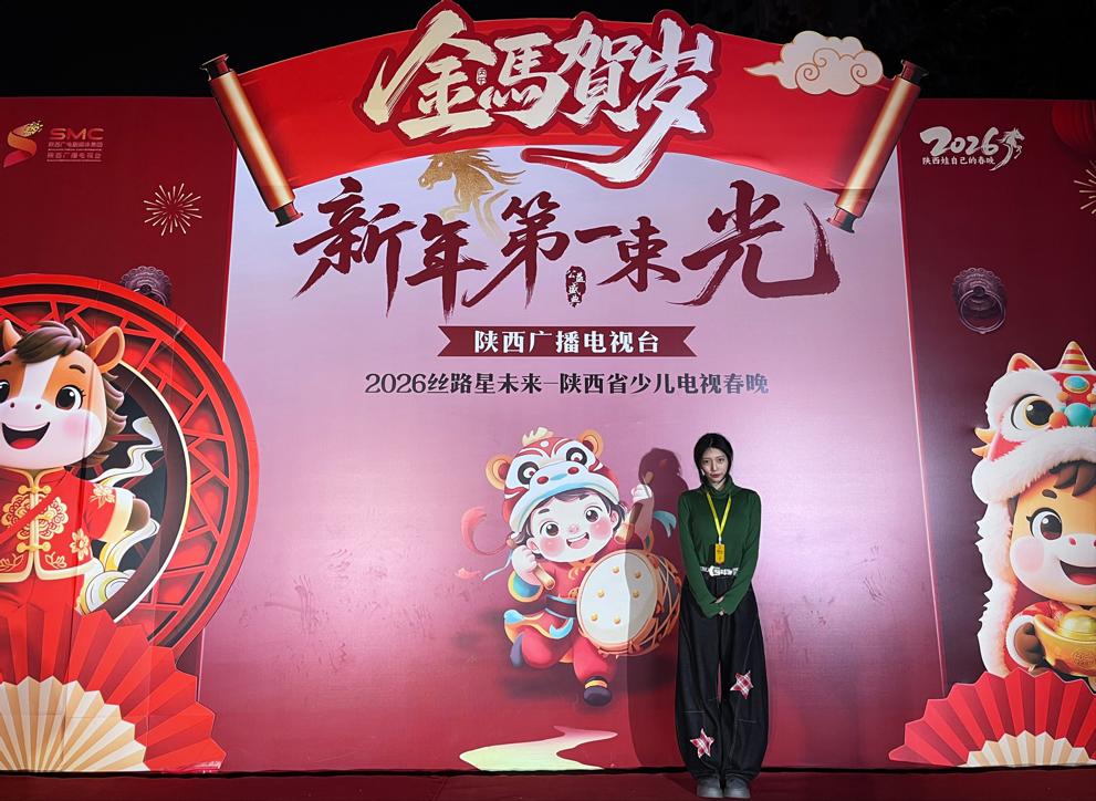 近日,艺术与设计学院播音与主持艺术专业8名学生,应陕西广电中心邀请,于1月24日至1月25日全程参与了“2026年陕西少儿春晚”的录制志愿服务工作。同学们凭借扎实的专业素养与饱满的实践热情,在台前幕后的各项协调与组织工作中发挥了积极作用,为这场全省瞩目的少儿艺术盛会注入了蓬勃的青春力量。