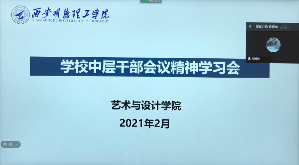 为深入学习并领会学校中层干部会议精神,促进学校教育事业稳步发展。2月1日上午,艺术与设计学院召开全体教职工云端会议,传达学习学校中层干部会议精神,安排部署贯彻落实相关工作。艺术与设计学院全体教职工参加了集中学习,会议由党总支书记何文举主持。