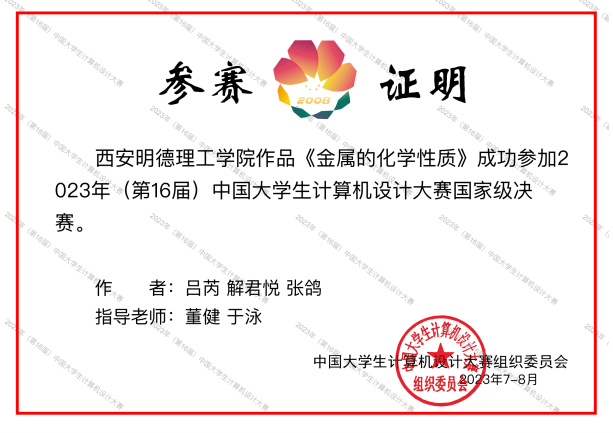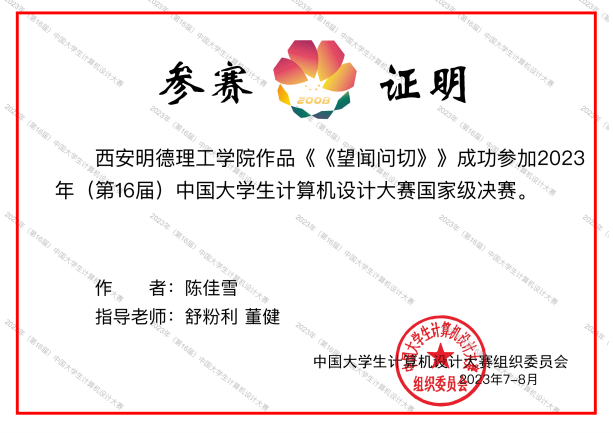 2023年7月至8月,第16届中国大学生计算机设计大赛总决赛我院学生分别在沈阳决赛区、厦门决赛区及杭州决赛区进行。2026年国际足联世界杯艺术与设计学院学生在各位专业教师的精心组织和指导下,经西北赛区组委会决赛评审,共计6组作品进入全国总决赛,经历各决赛区专业评委的评审,最终荣获二等奖1项;三等奖2项的成绩,并为所有参加全国总决赛的队伍颁发参赛证明。