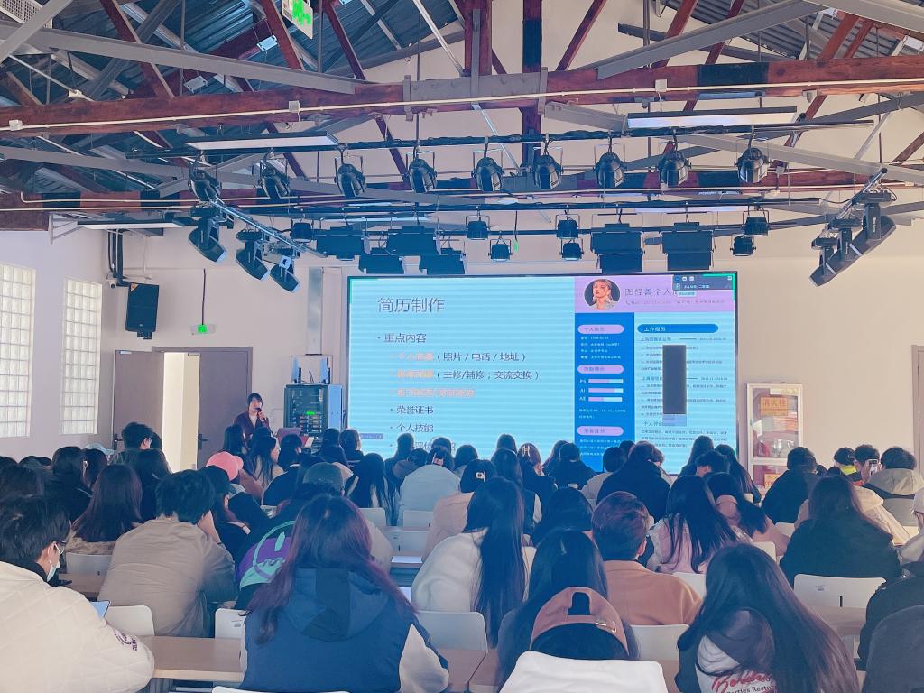 动员会上,王嘉睿老师为同学们讲解了简历制作的相关注意事项,同时从实际出发,为同学们详细讲解了求职过程中的关键环节。