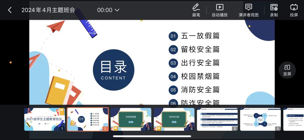 安全无小事,责任重千钧。本次五一节前安全教育主题班会的召开,强化了学生在交通安全、户外避险和生命健康等多个方面的安全意识,提高了学生的安全防范能力,和识别危险的能力,引导学生做好安全防范的各项措施,确保出行安全,为全体学生过一个“安全、健康、平安”的五一假期保驾护航。
