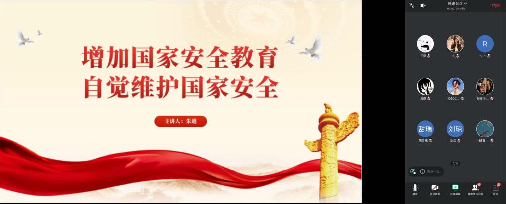 今年4月15日,是我国第九个全民国家安全教育日。国家安全是安邦定国的重要基石,为提升我院学生国家安全意识,营造维护国家安全的良好氛围,在第九个全民国家安全教育日之际,艺术与设计学院于近日在全院各班级召开了以“国家安全记心间,青春护航筑梦行”为主题的安全警示教育班会。