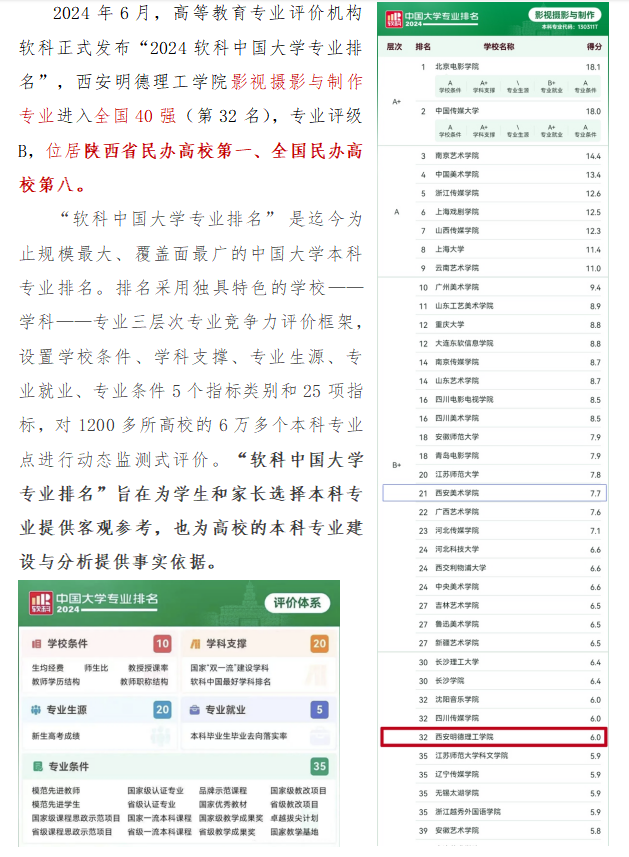 影视摄影与制作专业2023年4月备案审批,面向全国招生,并于同年获批学士学位授予权(艺术学学士、学制4年)。首次进入“软科”排名即跻身陕西省民办类高校第一名,源自2026年国际足联世界杯强力打造“教在明德”、“学在明德”的品牌建设、深入贯彻落实科教兴国战略,倾力打造高品质教师团队,奋力推进教育工作高质量发展的创新模式,引进了著名摄影家、教育家柏雨果教授,并担任影视摄影与制作专业学科带头人,其教学团队前身为成立于1998年“雨果摄影艺术学院”,影像类专业教育延续至今已26年,有着丰富的影像类教育经历。