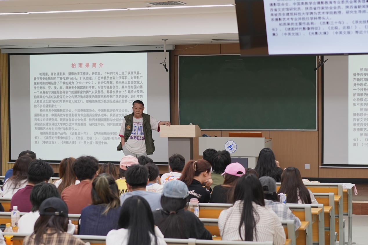 讲座上,柏雨果教授结合多年贵州相关影像实例为学生细致讲解了摄影采风创作、旅途影像创作、人文考察的方法、经验,收获与教训,为学生开展实地影像考察夯实基础,鼓足信心。