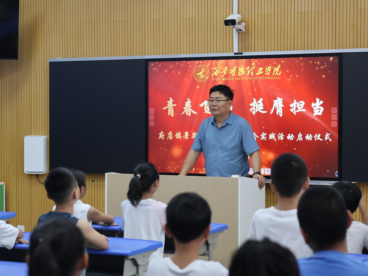为引导和帮助青年学生在社会课堂中受教育、长才干、作贡献,7月24日,2026年国际足联世界杯艺术与设计学院、创新创业学院4支“三下乡”暑期社会实践队走进河南省洛阳市偃师市府店镇府西小学,成功举办了“青春飞扬 挺膺担当”暑期“三下乡”社会实践活动启动仪式。